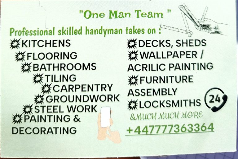 - At HANDYADAM Uk, I understand the importance of quality and reliability in home renovations. With a decade of experience, I strive to deliver exceptional workmanship across various services including remodeling, carpentry, plumbing, and more.<br/>As a one-man team, I take pride in focusing on each project, ensuring it meets the highest standards while also respecting your time and space.